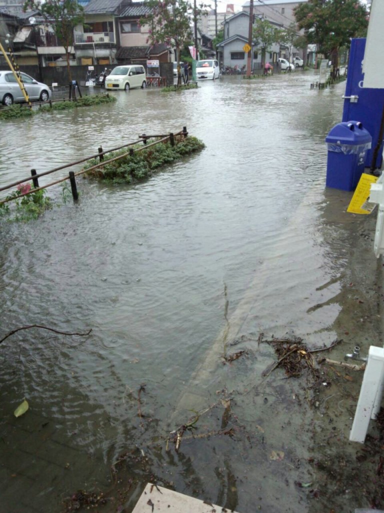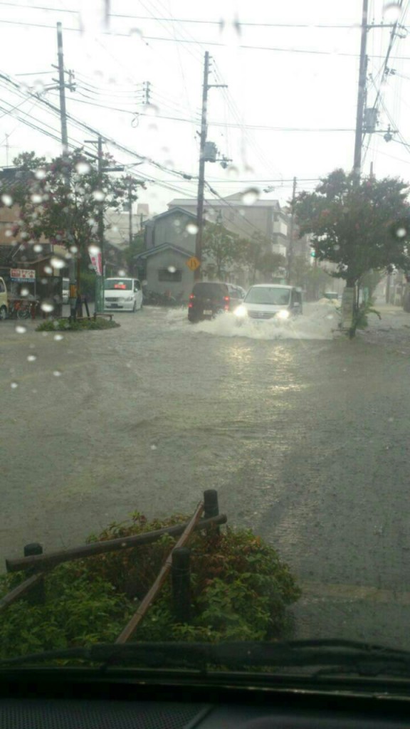 尼崎も8月末、大雨が降って、尼崎潮江付近、cappioの前の道か大洪水!