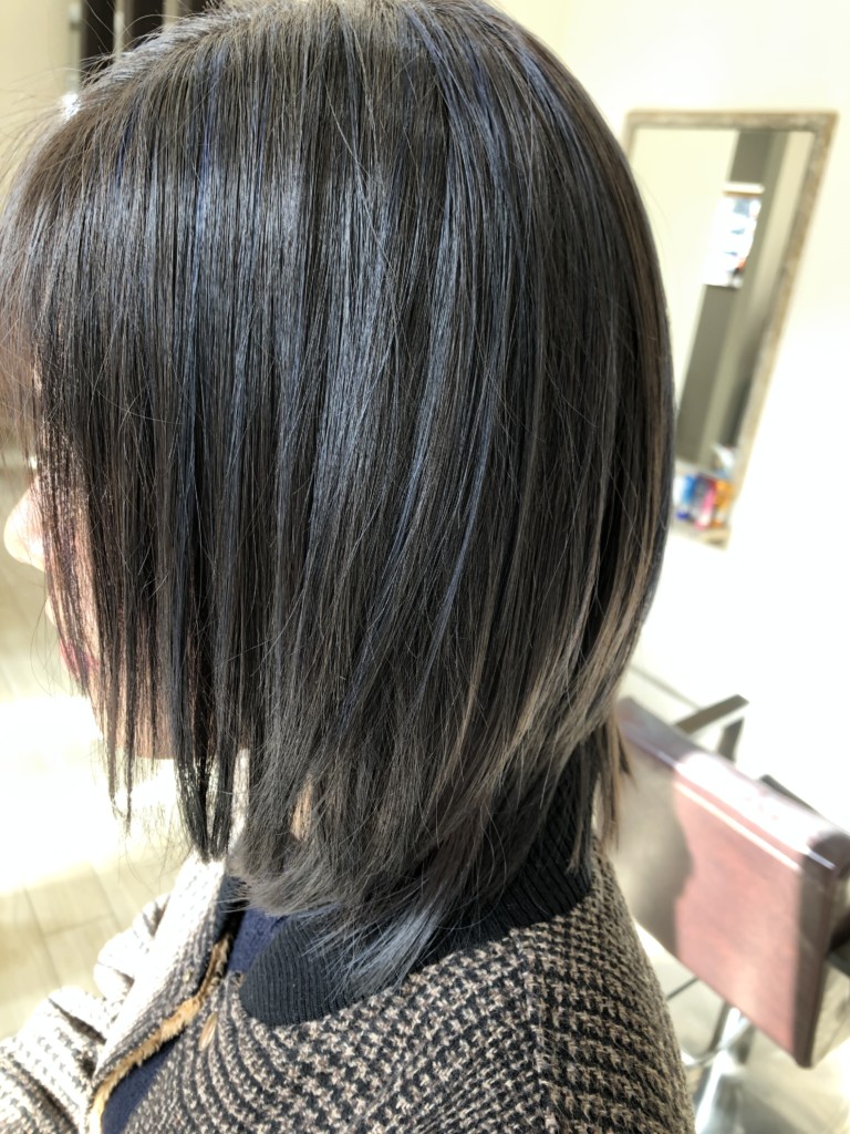 まず、全体にハイライトを入れて、上からミルボンさんのアディクシーカラーのサファイアを入れました。